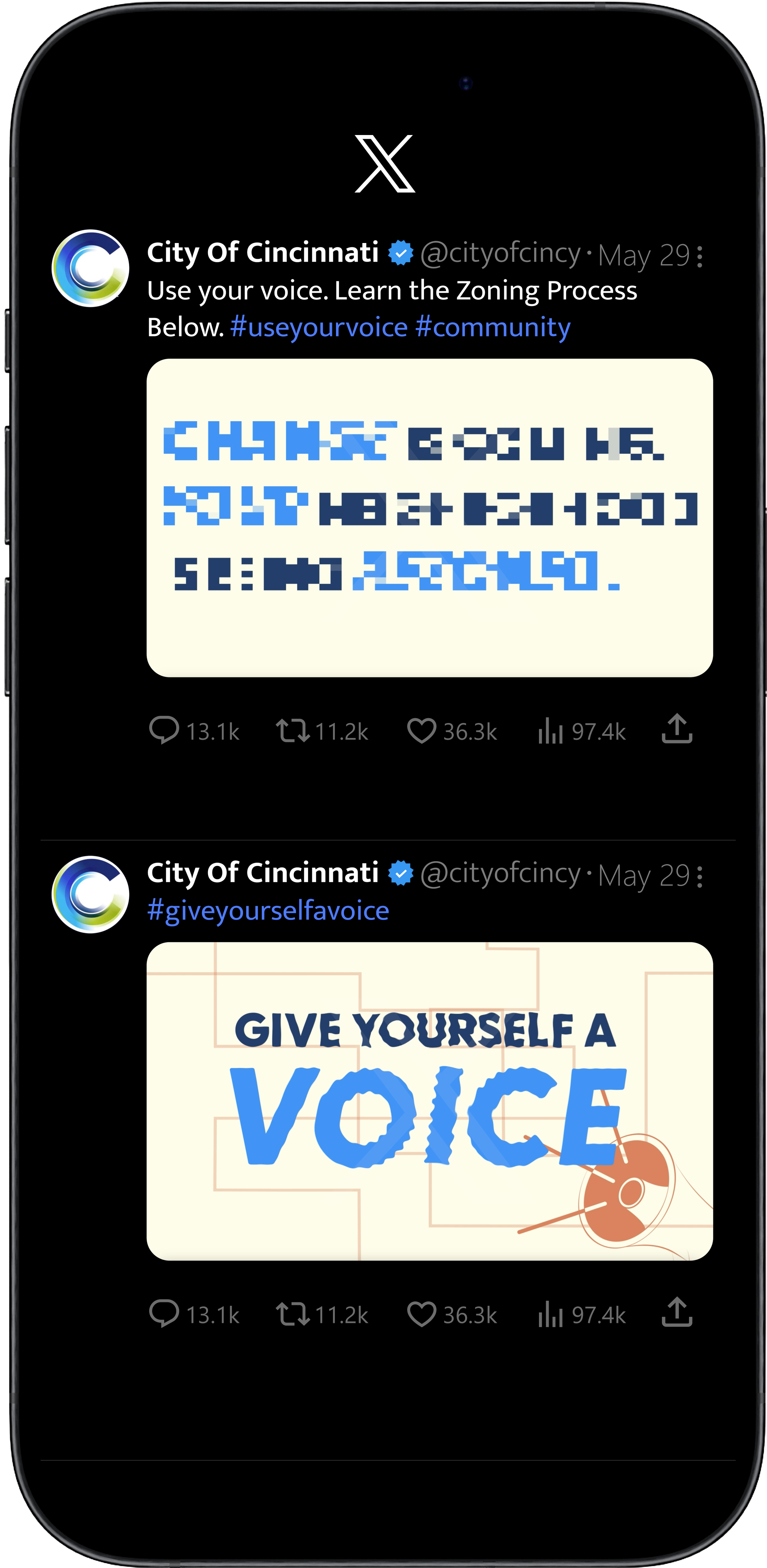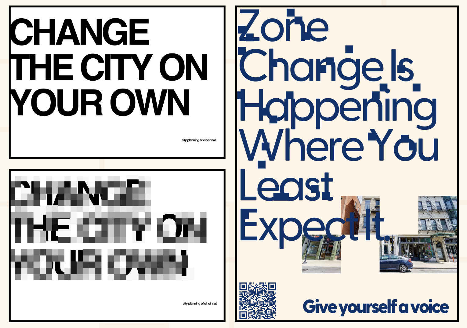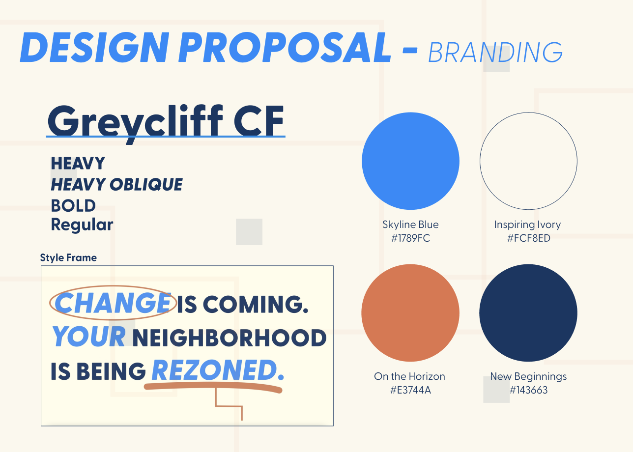 Design Objective: Create an informative pilot campaign involving a new brand identity for the City of Cincinnati that aims to educate East Price Hill community members on the process of rezoning and how to civically engage.